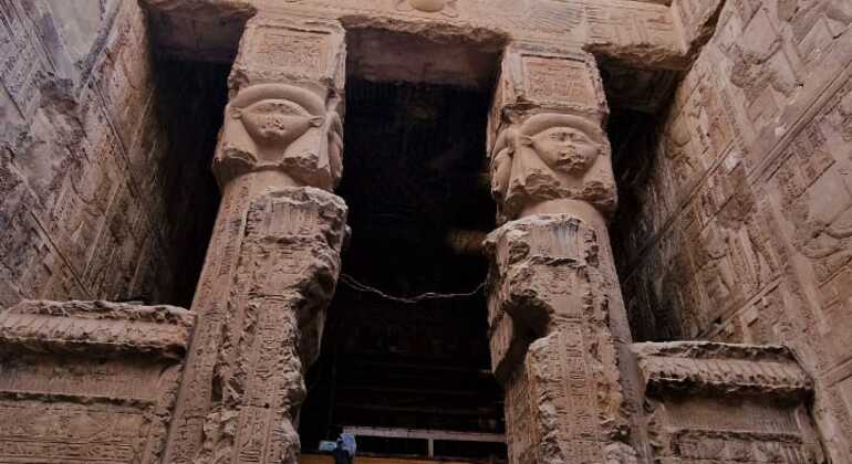 Explore el magnífico Templo de Dendera en una excursión privada de un día. Descubra su rica historia, sus intrincadas tallas y su emblemático techo zodiacal con la guía de expertos para vivir una experiencia cultural inolvidable. ¡No se lo pierda!
