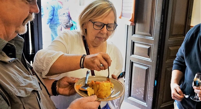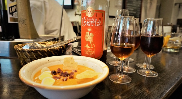 Comience su recorrido en una bodega realmente antigua, de unos 200 años de antigüedad. Allí probará su primer vino dulce malagueño. Un guía local le explicará las diferencias entre los vinos y los tipos de uva utilizados. A continuación, diríjase a uno de los lugares favoritos de los malagueños, donde les encanta disfrutar de un buen vino y unas tapas. Es un lugar especial con una larga historia y una decoración tradicional. Tómese otra copa de vino con sus tapas y disfrute de la sabrosa comida malagueña. Por último, sienta el ambiente de una acogedora taberna en los alrededores de la calle Carretería. Sumérjase en el ambiente local, lejos de los concurridos lugares turísticos. Pruebe la especialidad de la casa, el vermú español, y tome unas 5-6 tapas caseras por persona o más para compartir Si tiene alguna restricción alimentaria, díganoslo en el momento de hacer la reserva. Podemos ofrecer opciones para dietas vegetarianas o sin gluten.