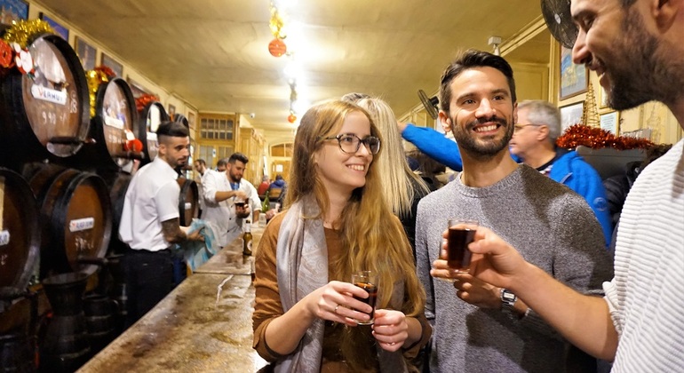 Junto con nuestro guía local profesional, visite 3 tabernas o bodegas diferentes en el centro de la ciudad, incluida la taberna más antigua de la ciudad, fundada hace 175 años. Nuestro guía le explicará las diferencias entre cada vino y los mitos sobre el origen de las tapas mientras disfruta del ambiente y la compañía de su grupo. A continuación, nos dirigiremos a uno de los bares favoritos de los malagueños para degustar algunos de los mejores vinos y tapas de la ciudad. Aquí, tomará otra copa de vino junto con sus primeras tapas. A continuación, experimentaremos el ambiente de una taberna andaluza en los alrededores de la Calle Carretería, y nos sumergiremos de lleno en el ambiente local lejos de las multitudes de turistas. Degustaremos la especialidad de la casa, el Vermut Español, y probaremos unas 5-6 tapas caseras por persona o más para compartir. Por último, nuestro guía le acompañará hasta la entrada del local flamenco, propiedad de bailarines, cantantes y músicos profesionales. Allí, sentirá y se enamorará de la magia y la pasión de un auténtico espectáculo flamenco. Nota: Ofrecemos opciones vegetarianas o sin gluten y podemos adaptarnos a sus necesidades dietéticas si nos lo comunica en el momento de la reserva.