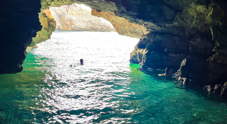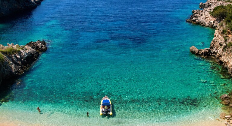 - Your journey begins with a 40-minute speedboat ride across the waters of the Ionian Sea, leading to the legendary Haxhi Ali Cave. Spend 20 minutes exploring this natural wonder, snorkeling into its depths, and swimming in its crystal-clear waters.